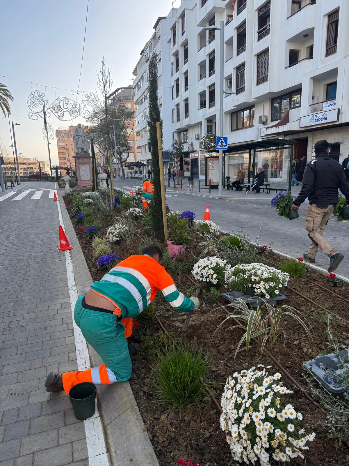 El concejal delegado de Parques y Jardines, Ángel Martínez, ha informado de que se están llevando a cabo trabajos de ornamentación con planta de temporada en distintos puntos de la ciudad, con el objetivo de embellecer y aportar color a los espacios públicos de Algeciras.