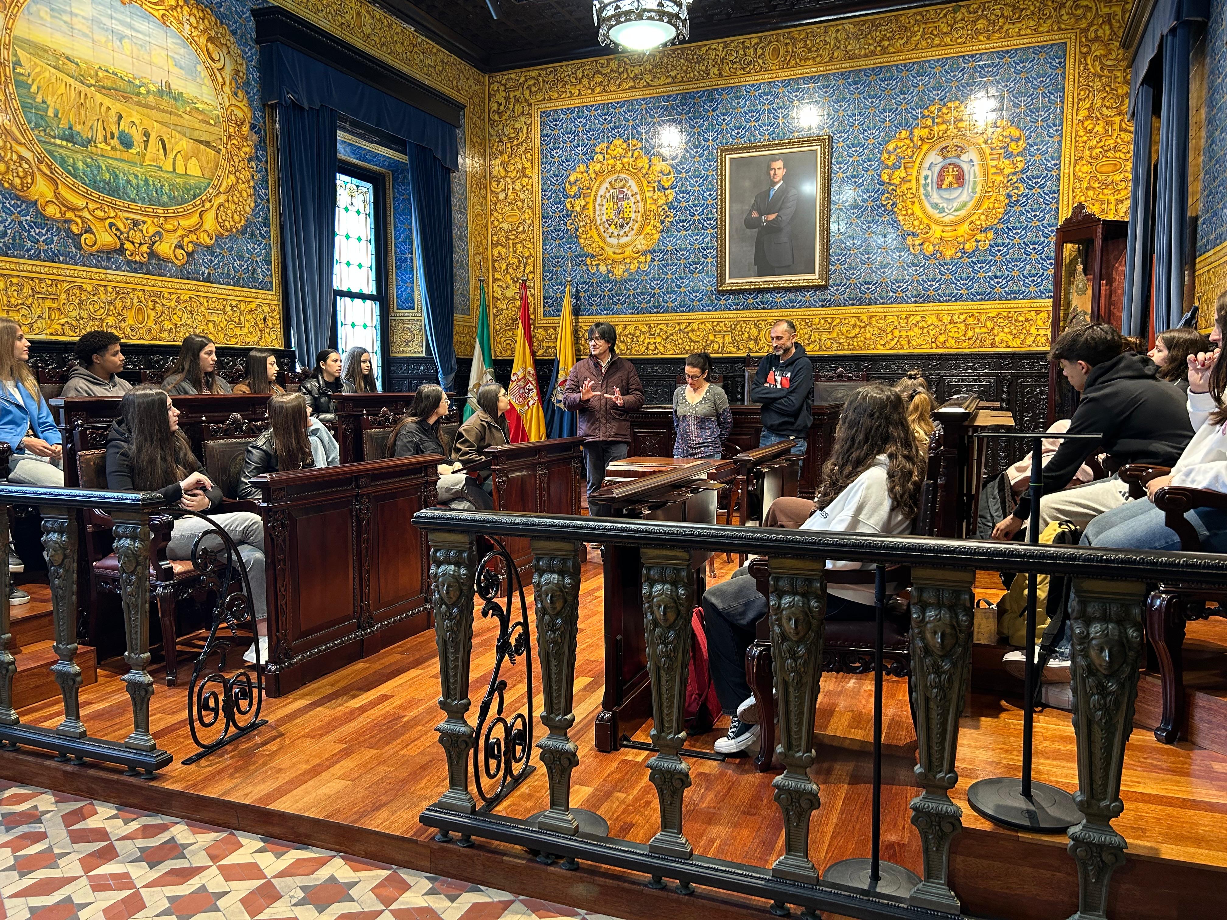 Alumnos búlgaros del programa Erasmus+ del IES García Lorca visitan el Salón de Plenos