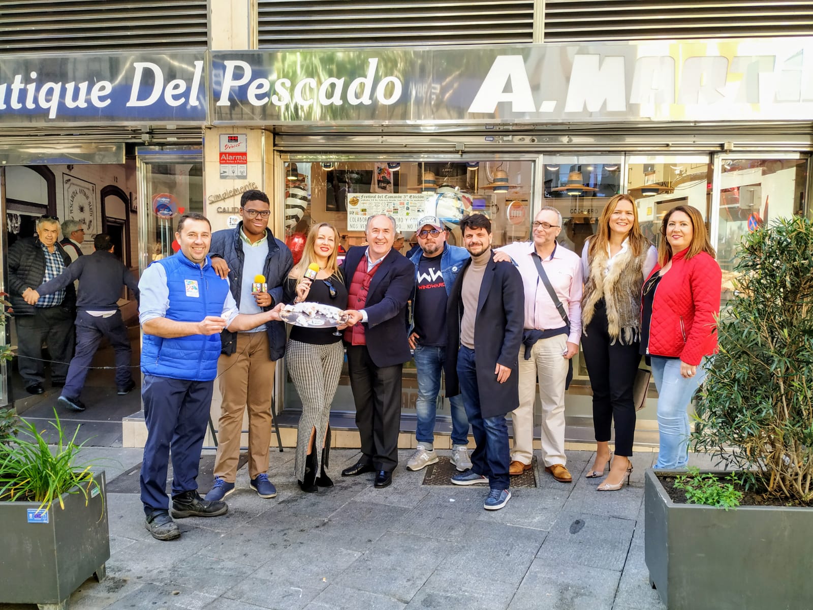 El alcalde, José Ignacio Landaluce, y el teniente de alcalde delegado de Comercio, Sergio Pelayo, acompañados de las concejalas María Solanes y Montse Barroso, han acudido esta mañana a la plaza de abastos Ingeniero Torroja donde comerciantes del centro y el mercado, encabezados por YaTV y ClickArt, se han unido para organizar la tercera edición del “Camarón Fest”, en el que se han regalado cartuchos de camarones a los asistentes como preámbulo al Carnaval Especial que se celebrará los días 28 y 29 de febrero y 1 de marzo.