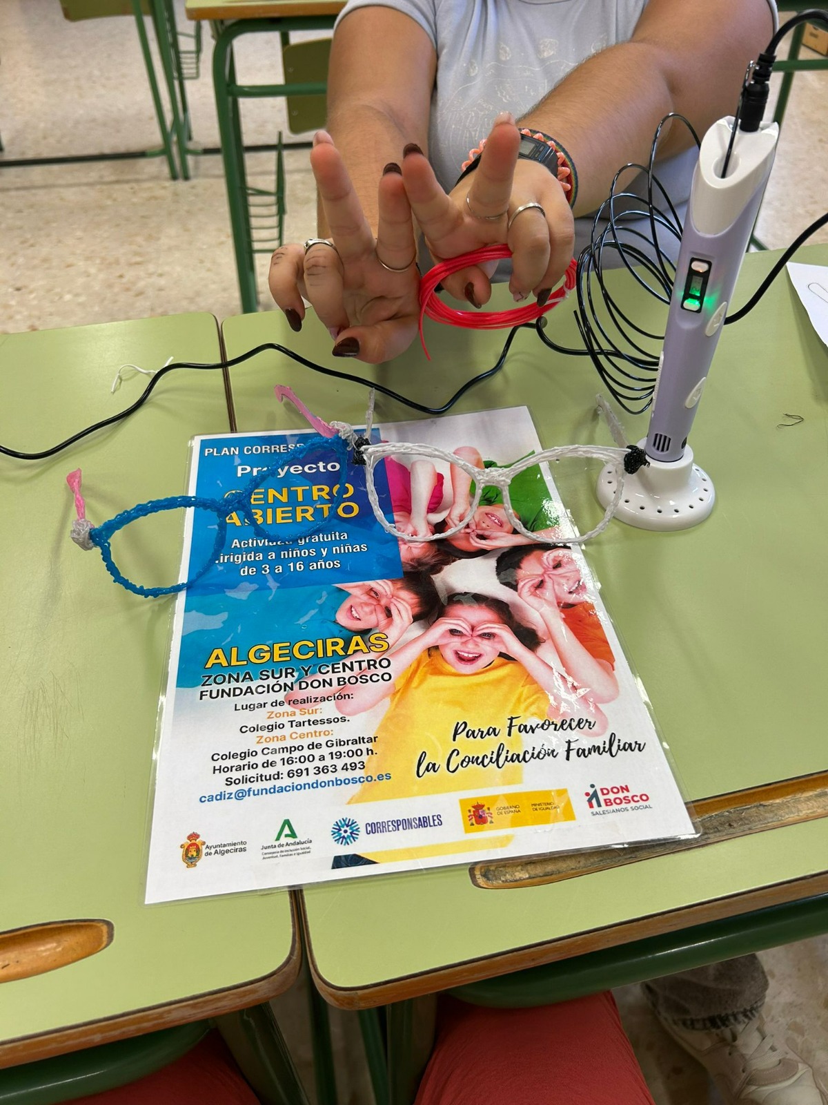 La Delegación de Igualdad y Bienestar Social, que dirige Paula Conesa, ha informado de que esta semana los y las adolescentes que participan en el proyecto Centro Abierto en la Zona Sur han realizado actividades con el Bolígrafo 3D desarrollando así su creatividad, competencias digitales, competencias matemáticas y competencias básicas en ciencia y tecnología, competencias para aprender a aprender, el sentido de la iniciativa y espíritu emprendedor así como también fomentando el trabajo en equipo.