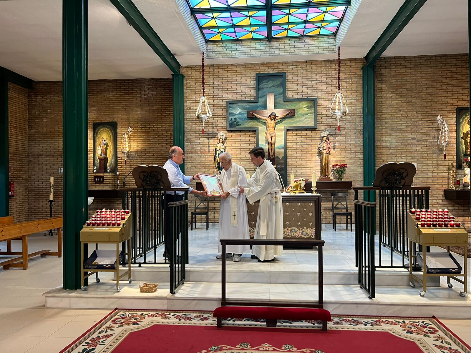 Así, el alcalde, José Ignacio Landaluce, ha hecho entrega al religioso de la insignia de la ciudad y de un pergamino en el que se recoge esta gratitud de la ciudad por sus muchos años de ejercicio pastoral. El gesto tuvo lugar antes de la Eucaristía celebrada en la Parroquia de San Antonio de Padua en presencia del párroco del barrio de La Reconquista, Antonio Jesús López García-Mohedano.