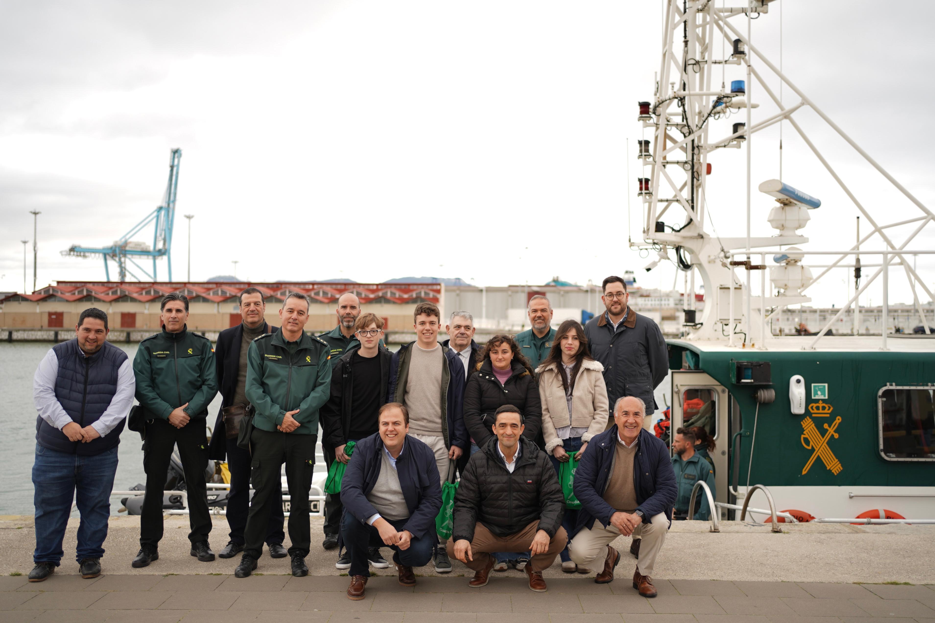 La Guardia Civil de Algeciras ha querido mostrar su particular felicitación al equipo del Baelo Claudia ofreciéndoles la posibilidad de conocer desde dentro una de las embarcaciones con las que la benemérita lucha contra los ilícitos en las aguas del estrecho. Los cuatro componentes del equipo y sus familiares han podido disfrutar además de una paseo por las aguas de la bahía.