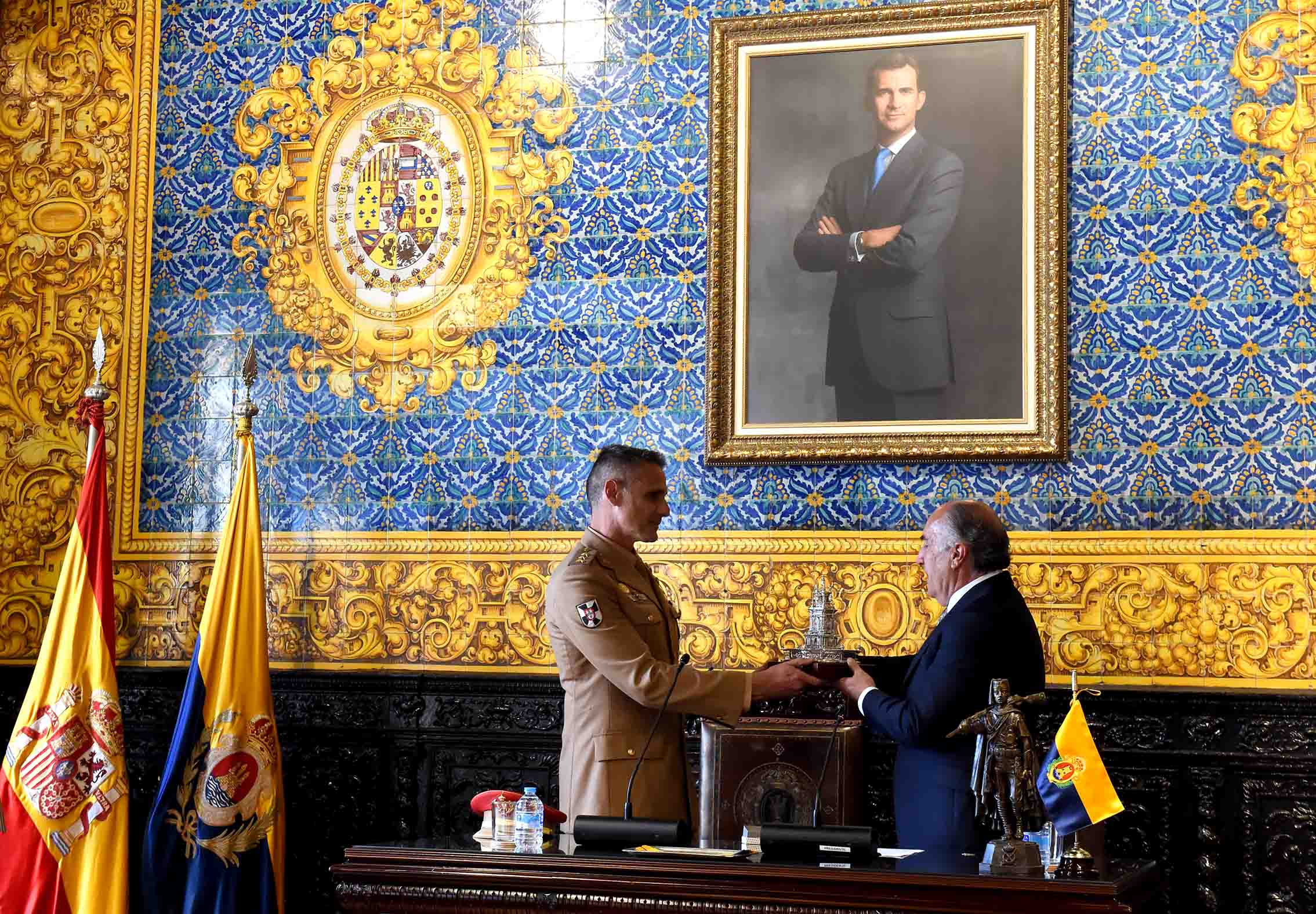 El primer edil ha dado la bienvenida a la ciudad al coronel Rubio, que tomó posesión del mando del Grupo hace unos meses, y le ha agradecido la presencia de esta unidad militar, la más laureada de las Fuerzas Armadas españolas, por segundo año consecutivo, en la Semana Santa algecireña.