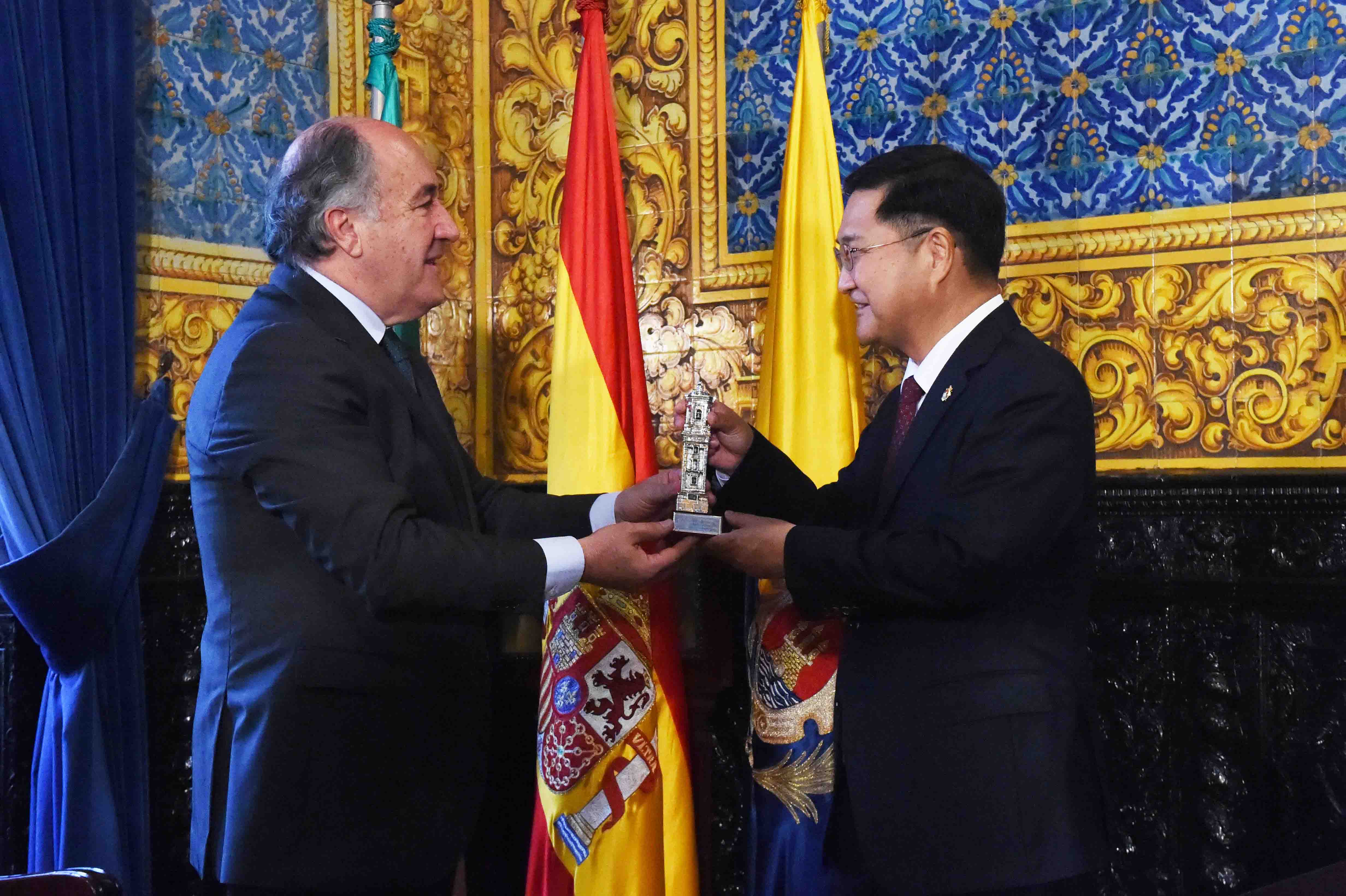 Landaluce ha dado la bienvenida al representante oriental, le ha impuesto la Insignia de la Ciudad y le ha ofrecido dejar su rúbrica en el Libro de Oro de la Ciudad, en tanto que ha definido al país asiático como la puerta principal de Algeciras hacia el continente asiático. Dentro del protocolario intercambio de presentes, Landaluce le ha hecho entrega de una réplica de la torre de la Palma y de bibliografía relacionada con la Historia y los atractivos turísticos de la ciudad, mientras que el embajador le ha cumplimentado con un juego de té de origen coreano.