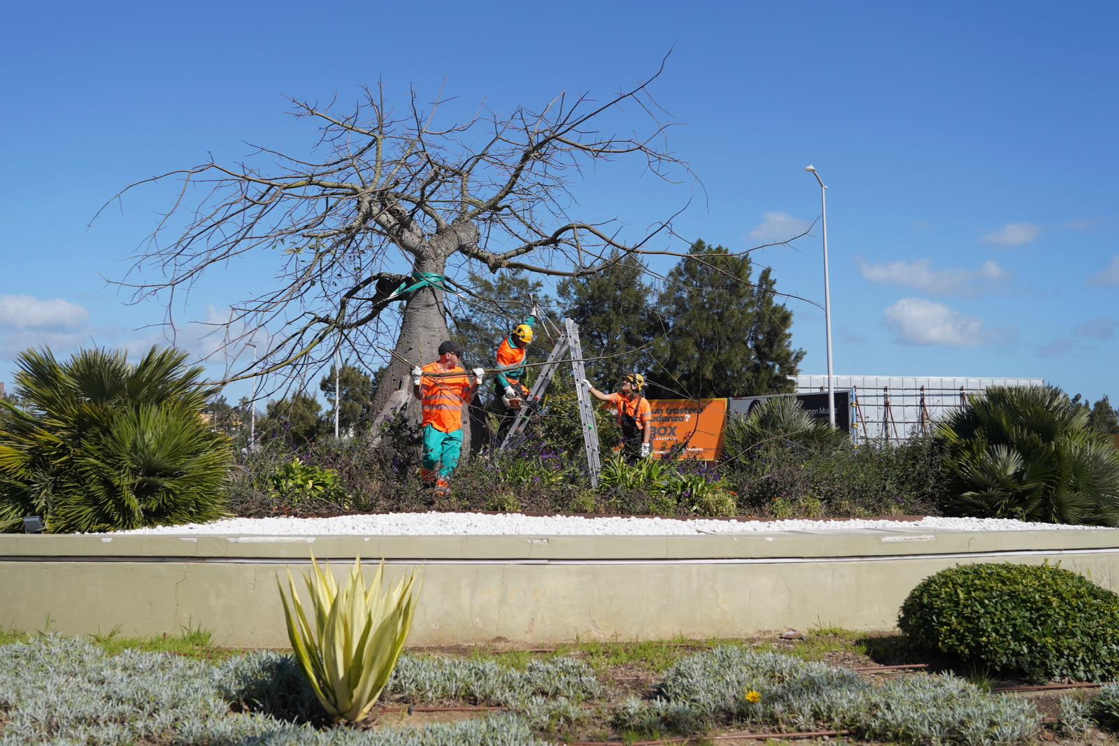 El Ayuntamiento de Algeciras ha informado de que la Delegación de Parques y Jardines está llevando a cabo labores de mantenimiento en la rotonda donde se ubica la ceiba, situada en la carretera al Rinconcillo, a la altura de San José Artesano.