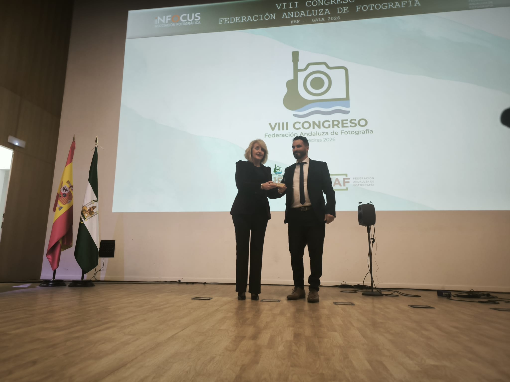 La delegada de Cultura recoge de manos del presidente de iNFOCUS la distinción al Ayuntamiento de Algeciras por su apoyo en la organización de este evento a nivel Andaluz