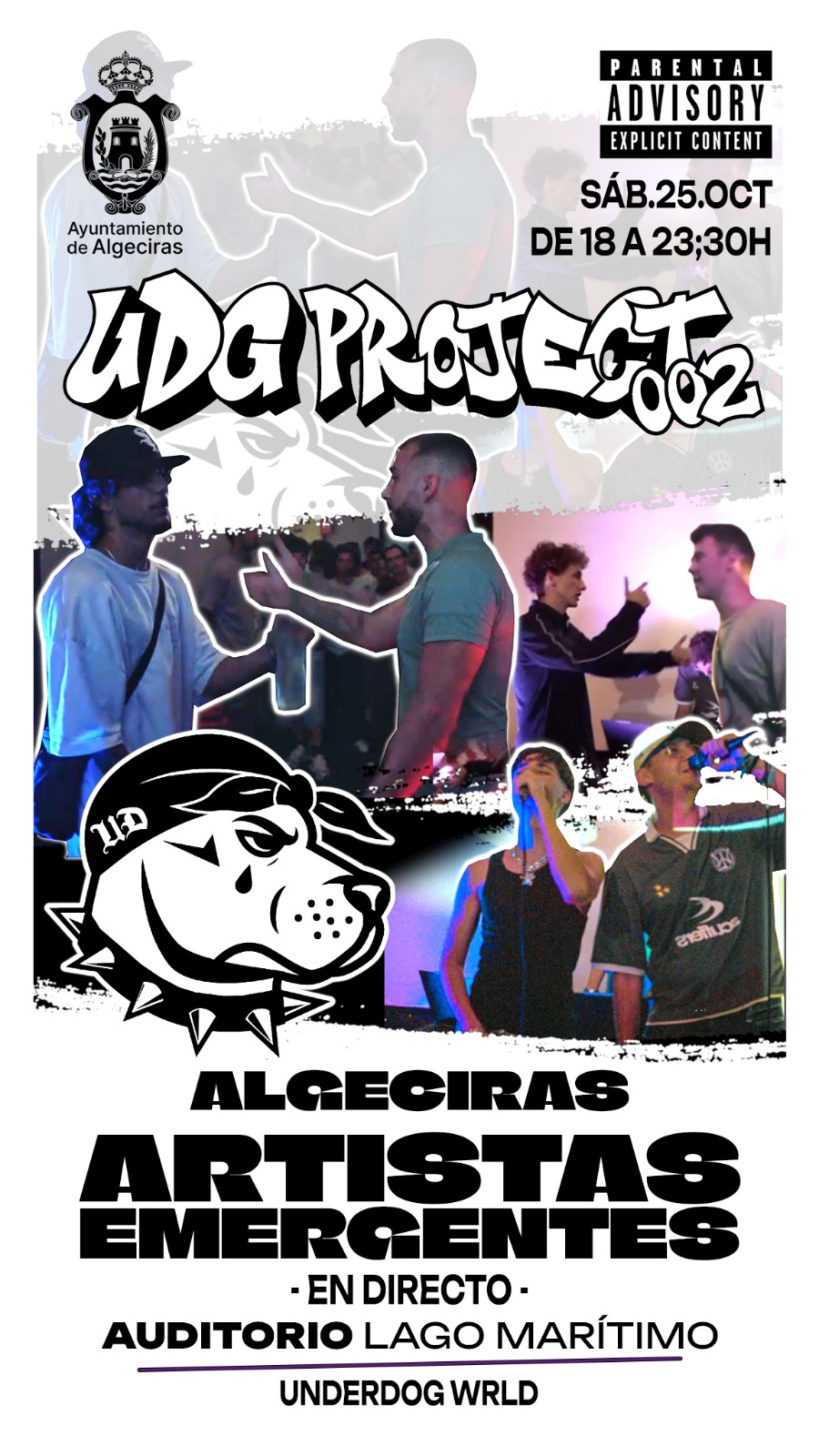 La jornada, organizada por el colectivo ‘Underdog WRLD’ en colaboración con la Delegación de Juventud del Ayuntamiento de Algeciras, se desarrollará de seis de la tarde a once y media de la noche, ofreciendo una completa programación con conciertos en directo, exhibiciones de freestyle y dinámicas participativas abiertas al público. A lo largo de la tarde, diversos artistas emergentes de Algeciras y la provincia compartirán escenario en un formato dinámico, inclusivo y cercano al público.