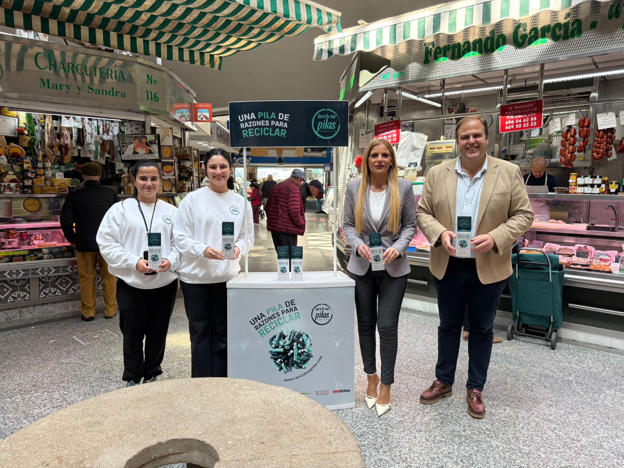 Vázquez y Quiles apoyan la campaña de reciclaje de pilas “una pila de razones” en el mercado Ingeniero Torroja