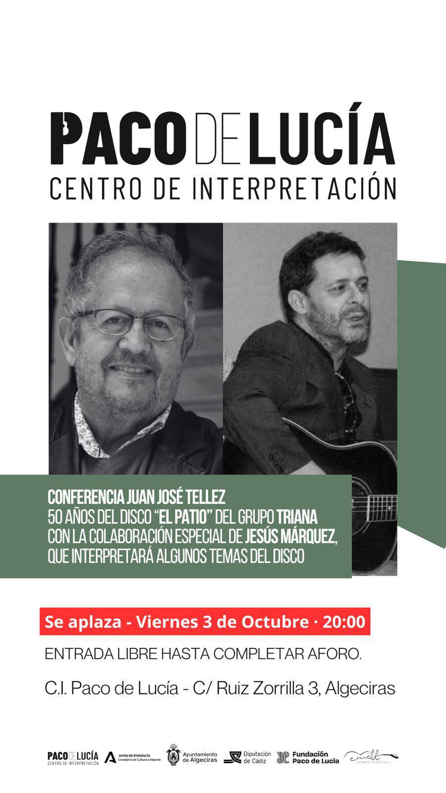 Conferencia ‘50 años del disco El Patio del grupo Triana’, que correrá a cargo de Juan José Téllez y contará con la colaboración de Jesús Márquez