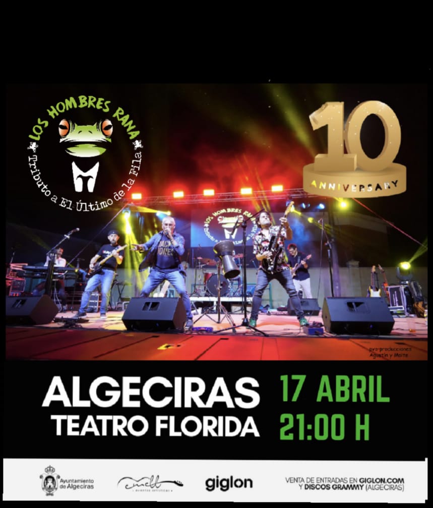 La banda de tributo Los Hombres Rana celebra su 10º aniversario con una gira en 2026 ,un concierto muy especial en el Teatro Florida de Algeciras. Contaremos con el grupo Rakusion como grupo invitado y alguna sorpresa más !!