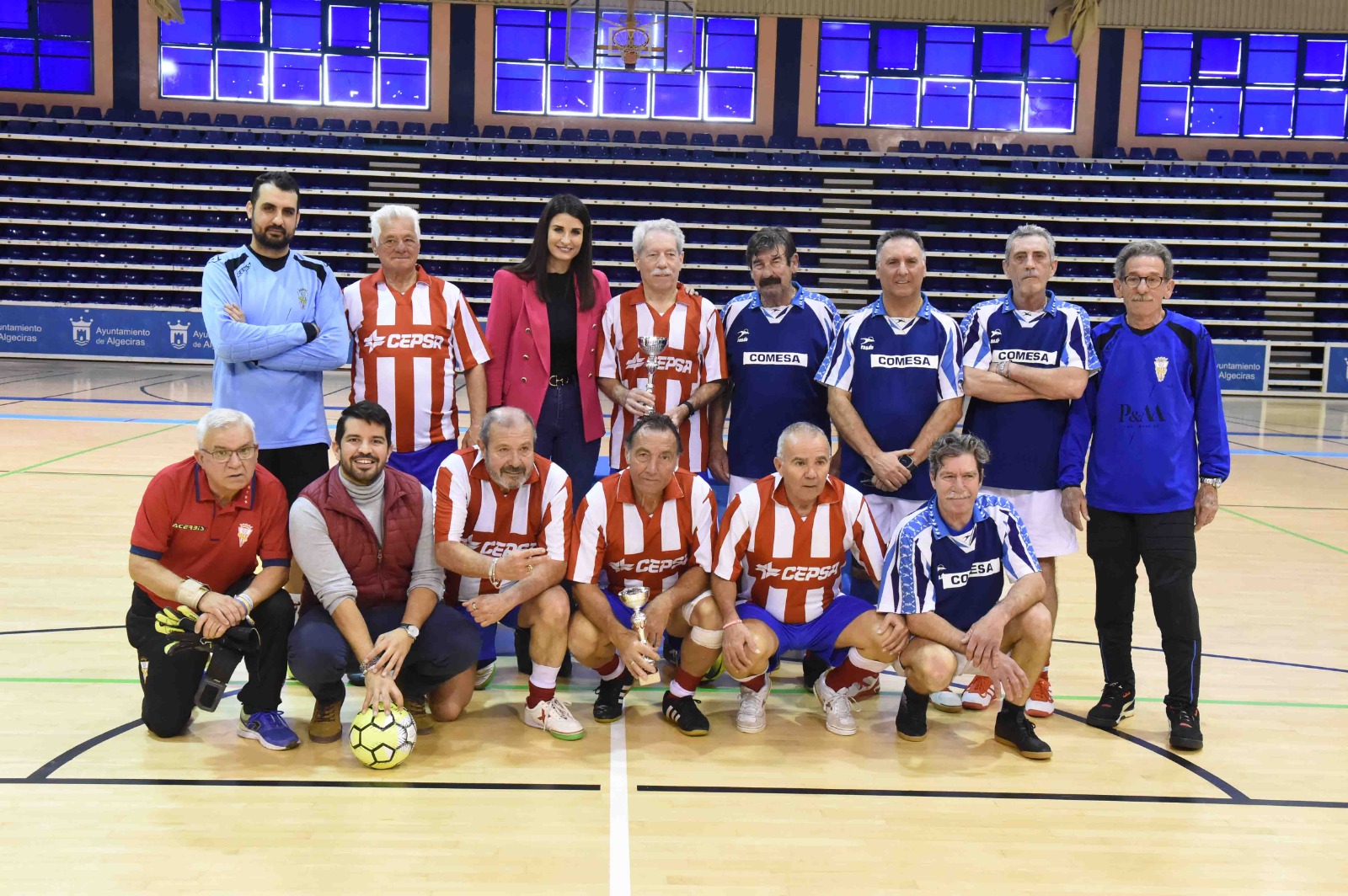El teniente de alcalde delegado de Deportes, Jorge Juliá, junto a la concejal delegada de Atención al Mayor, Patricia Bueno, han hecho entrega de los premios de la XV edición del Trofeo de fútbol sala ‘Junta de Participación y de Gobierno’, que ha celebrado el Centro de Participación Activa de San José Artesano en las instalaciones del Polideportivo Municipal ‘Ciudad de Algeciras - Dr. Juan Carlos Mateo’.