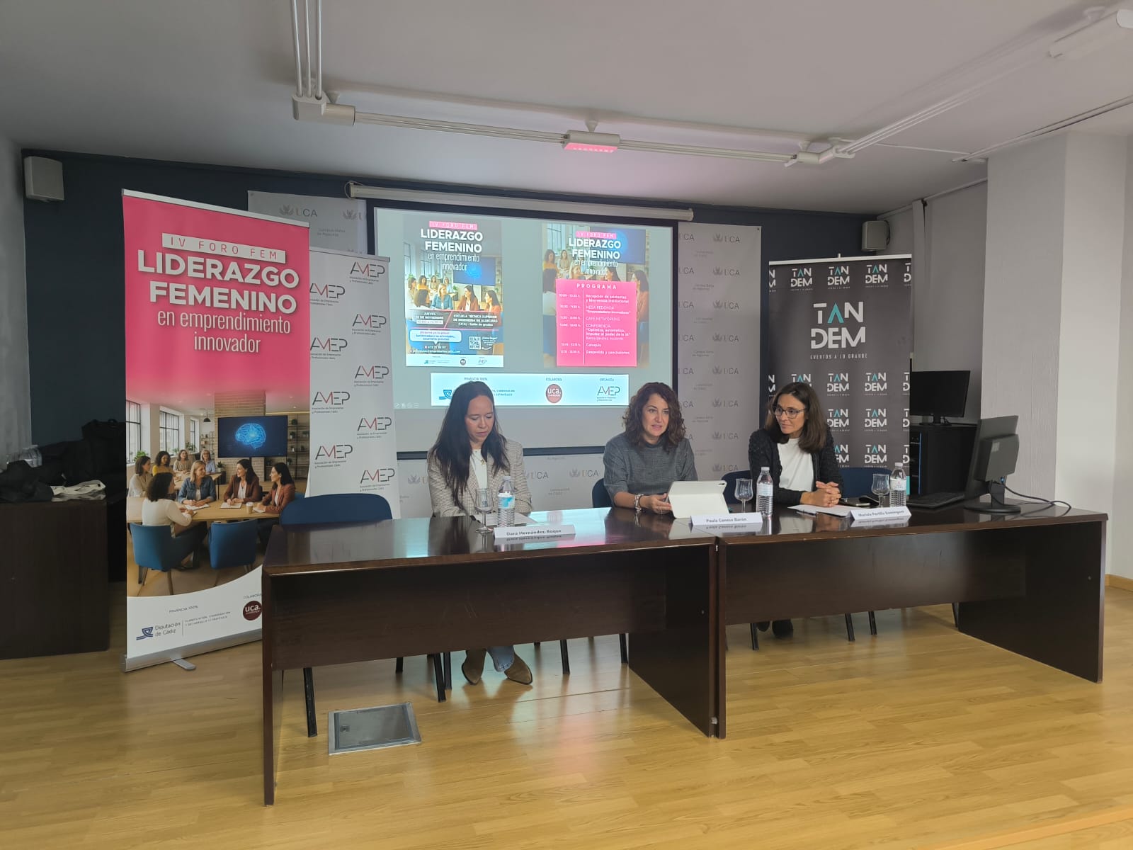 La teniente de alcalde delegada de Igualdad y Bienestar Social, Paula Conesa, ha sido la encargada de dar la bienvenida en nombre del Ayuntamiento de la ciudad a los a los participates en el IV Foro-Fem “Liderazgo Femenino en Emprendimiento Innovador” organizado por la Asociación de Mujeres Empresarias y Profesionales de la Provincia de Cádiz. En la mesa de presentación, la delegada municipal estuvo acompañada por Mariola Portilla en representación de la AMEP, y Dara Hernández, profesora de Organización de Empresas de la UCA.