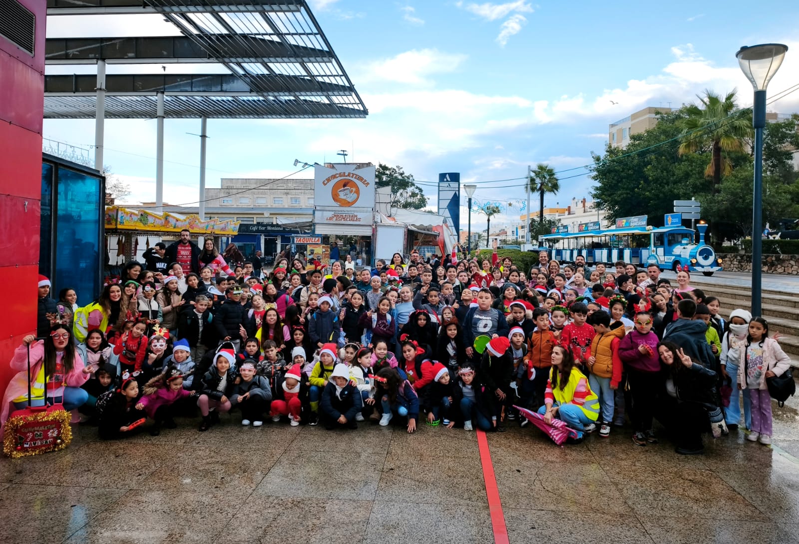 Los tenientes de alcalde delegados de Feria y Fiestas, Juana Cid, de Educación, Javier Vázquez Hueso, y de Participación Ciudadana, Jorge Juliá, han acompañado a los estudiantes del CEPr Juan Sebastián Elcano de Pescadores, en la celebración de un desayuno navideño, en el que disfrutaron de churros y chocolate, ofrecidos por la chocolatería/churrería ‘Los Especiales’, sita en la Plaza Andalucía, y posteriormente de un paseo en el trenecito navideño, una actividad que es conocida popularmente como ‘Churrotren’.