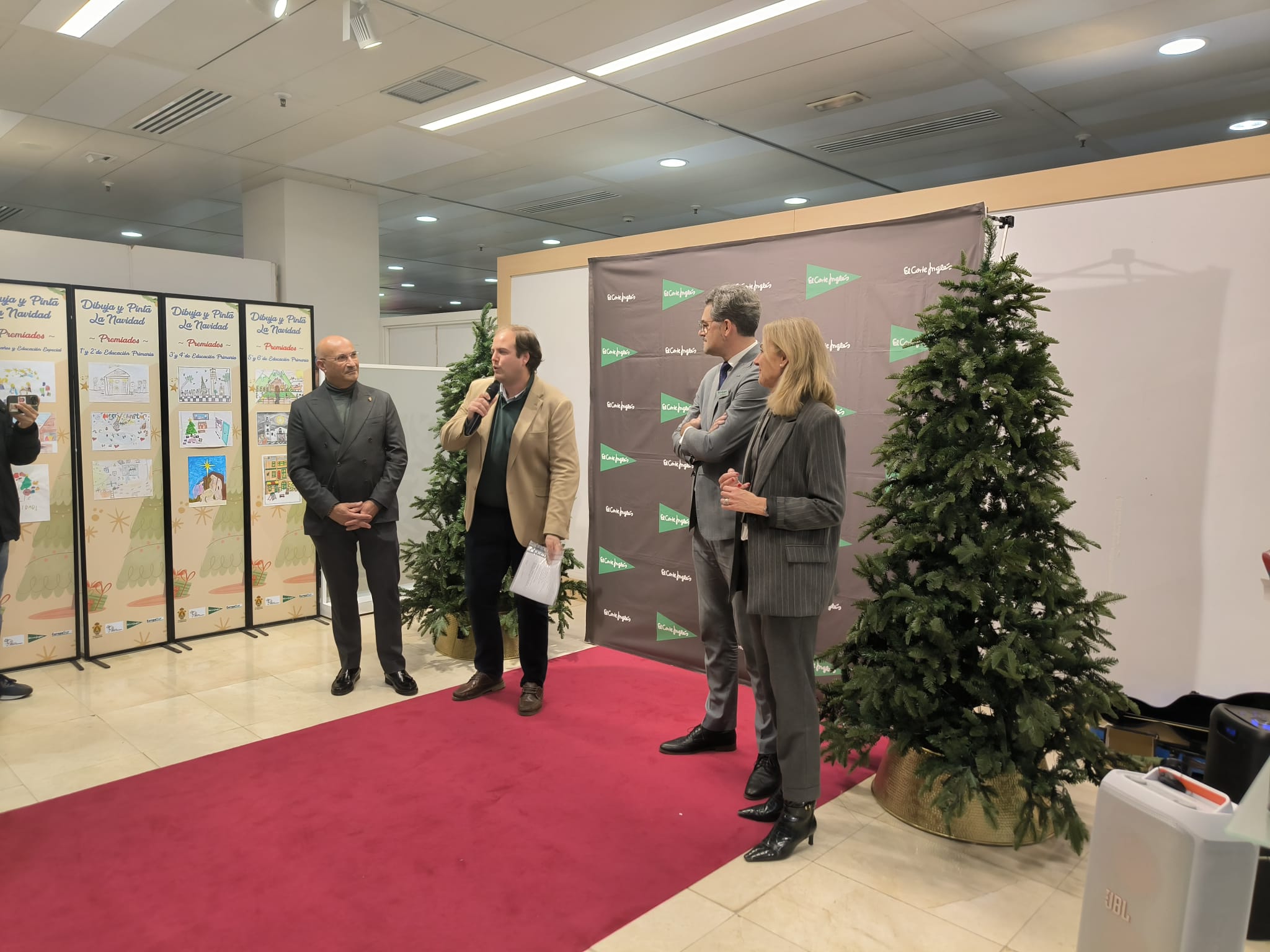 El teniente de alcalde delegado de Educación, Javier Vázquez Hueso, acompañado por el delegado de Parques y Jardines, Ángel Martínez, ha participado en la entrega de premios del concurso ‘Dibuja y Pinta la Navidad’, que se ha celebrado en El Corte Inglés Bahía de Algeciras. La cita tuvo lugar hoy, tras la realización del concurso el pasado martes 9, y contó con la presencia del director de El Corte Inglés Bahía de Algeciras, Nicolás Bravo, y de la responsable de Comunicación y Relaciones Institucionales, Isabel Mora.