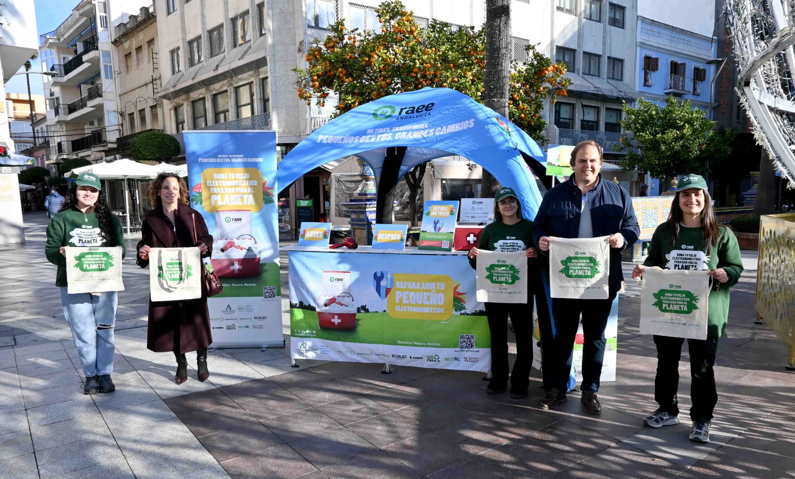 El teniente de alcalde delegado de Medio Ambiente, Javier Vázquez, ha visitado el stand que durante esta mañana permanece en la Plaza Alta correspondiente a la campaña de concienciación sobre el reciclaje de aparatos eléctricos y electrónicos, una iniciativa que está recorriendo toda Andalucía impulsada por la Consejería de Medio Ambiente, la Federación Andaluza de Municipios y Provincias (FAMP) y los productores de este tipo de dispositivos.